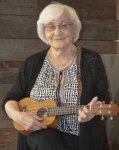 Rose Marie commented that she would have never thought she’d be playing the ukulele at her age. She’s grateful that Rachel took the time to teach her how to play and appreciates her encouragement which inspired her to start performing. Her encouragement led her to play with the Kennedy Creek Strummers, a group that often comes to Wesley Village to entertain the residents. She has performed seven times with the Kennedy Creek Strummers since learning the ukulele.